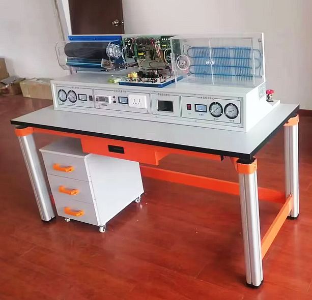 制冷制熱綜合實驗設(shè)備,制冷制熱實訓(xùn)臺,制冷制熱實驗裝置適合高等職業(yè)學(xué)院、中等職業(yè)學(xué)校的機電設(shè)備安裝與維修、 電氣與控制.電技術(shù)應(yīng)用、 電機與電器、制冷和空調(diào)設(shè)備運用與維修等專業(yè)的《制冷空調(diào)機器設(shè)備》、《制冷空調(diào)裝置的安裝操作與維修》、《制冷空調(diào)自動化》、 《空氣調(diào)節(jié)技術(shù)與運用》等程的教學(xué)與實訓(xùn)。空調(diào)制冷制熱實訓(xùn)臺采用了變頻技術(shù),先將單相交流電源經(jīng)整流橋整流成 直流電,又經(jīng)三相逆變橋把直流電“逆變”成頻率任意可調(diào)的三相交流電,自動控制壓縮機的速度,達(dá)到節(jié)能的目的。另外新增加其它類型的空調(diào)、冰箱系統(tǒng)及電路十幾 個機種,有利于學(xué)生更全面地掌握制冷制熱技術(shù)。分體空調(diào)為立體結(jié)構(gòu),前面為仿真 室內(nèi)機組,后部為仿真室外機組,室內(nèi)機組改進為真實空調(diào)組件,外套真空調(diào)全透明外殼。冰箱方面也進行了改進,前后格分開:前面為冷凍室,后面為電冰箱壓縮機、 工作室、加裝溫度調(diào)節(jié)器。