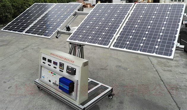 7、實驗實訓(xùn)系統(tǒng)采用可移動臺架結(jié)構(gòu),配有彩色鋁合金雕刻電路圖,示意圖,配備有顯示測量裝置,顯示日照指標(biāo),系統(tǒng)運行電壓等。