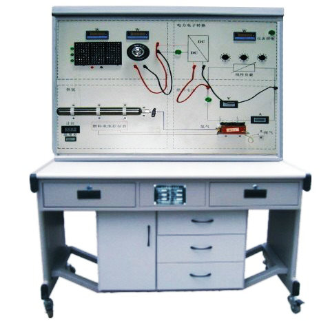 本實驗平臺由自吸式PEM燃料電池堆、金屬氫化物氫瓶及其組件燃料電池控制器、直流線性負載,交流線性負載,直流感性負載和測試儀表組成。主要面向職高、大學、研究生、以燃料電池發(fā)電為主課題的研究和培訓。