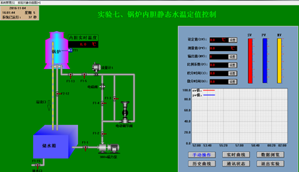 控制對(duì)象:由不銹鋼框架安裝、外置不銹鋼儲(chǔ)水箱、有機(jī)玻璃三容串接水箱、帶夾套不銹鋼常壓鍋爐容器、鋁塑復(fù)合管路、不銹鋼等組成。