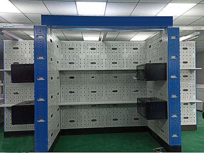 3)每個(gè)實(shí)訓(xùn)角區(qū)域安裝有樓層模擬板+支架2套,模擬三層建筑結(jié)構(gòu),每個(gè)角型區(qū)域配套2-3套,8個(gè)角共計(jì)16-24套6U實(shí)訓(xùn)機(jī)柜,冷軋鋼板,堅(jiān)固耐用,機(jī)柜五面設(shè)有16個(gè)Φ25進(jìn)出線孔,鋼化玻璃門。