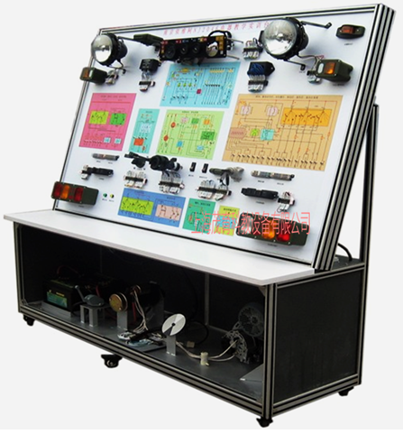 2.設(shè)備面板采用耐創(chuàng)擊、耐污染、防火、防潮的高級鋁塑板,表面經(jīng)特殊工藝噴涂底漆處理;面板打印有永不褪色的彩色電路圖;學(xué)員可直觀對照電路圖和實物,認識和分析汽車整車電器各系統(tǒng)的工作原理。