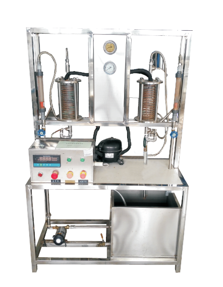 1、本裝置適用于制冷、空氣調(diào)節(jié)、食品冷凍、家電等專業(yè)的教學(xué)。系統(tǒng)由壓縮機(jī)、蒸發(fā)器、冷凝器組成,蒸發(fā)器采用透明耐壓玻璃作殼體,可直接觀察到制冷劑的蒸發(fā)和冷凝現(xiàn)象,并通過進(jìn)出水溫的變化可觀測制冷效果。