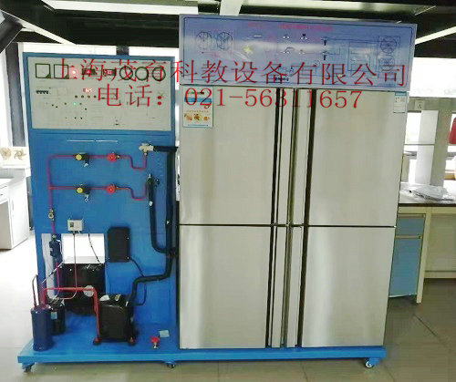 四、一機(jī)兩庫(kù)模擬實(shí)驗(yàn)設(shè)備,一機(jī)兩庫(kù)模擬實(shí)驗(yàn)裝置,一機(jī)兩庫(kù)模擬實(shí)驗(yàn)臺(tái)基本配置及功能:實(shí)訓(xùn)裝置主要由控制屏、實(shí)訓(xùn)桌、風(fēng)冷制冷機(jī)組及冷庫(kù)等組成