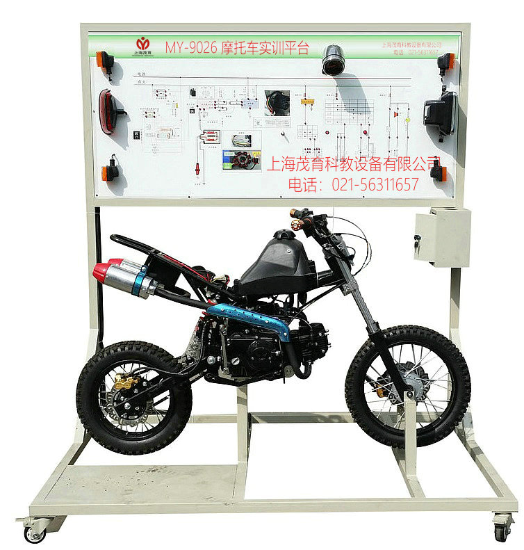 摩托車實訓平臺,摩托車實訓裝置,摩托車實訓設備采用本田125c摩托車總成與整車電器實物為基礎,充分展示儀表系統(tǒng)、燈光系統(tǒng)、雨刮系統(tǒng)、喇叭系統(tǒng)、發(fā)動機電器系統(tǒng)、起動系統(tǒng)和充電系統(tǒng)等電器各系統(tǒng)的組成結(jié)構(gòu)和工作過程。