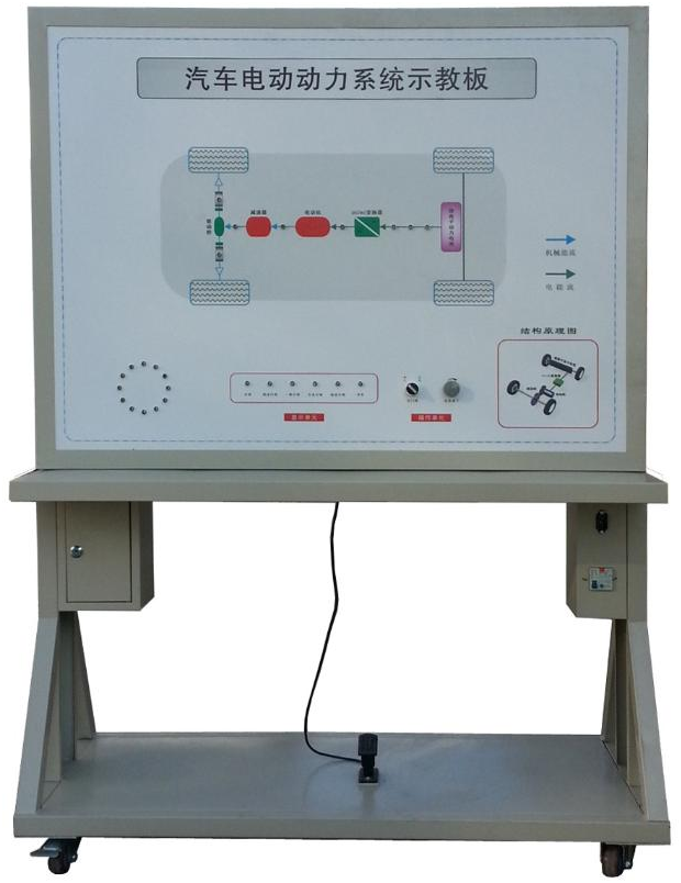 1、可模擬運行汽車電動動力系統(tǒng),展示汽車電動動力系統(tǒng)的組成結(jié)構(gòu)及原理。安裝發(fā)光二極管進行系統(tǒng)流向的動態(tài)指示。