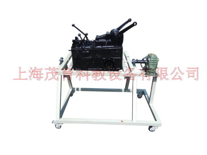 采用減速翻轉(zhuǎn)機(jī)構(gòu),可使變速器旋轉(zhuǎn)任意角度,并能任意位置鎖止,便于學(xué)生從不同的角度進(jìn)行拆卸和裝配。