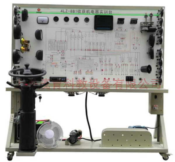 該設(shè)備采用 4LZ-8B1收割機(jī)整車(chē)電器實(shí)物為基礎(chǔ),充分展示儀表系統(tǒng)、燈光系統(tǒng)、雨刮系統(tǒng)、喇叭系統(tǒng)、發(fā)動(dòng)機(jī)電器系統(tǒng)、起動(dòng)系統(tǒng)和充電系統(tǒng)等電器各系統(tǒng)的組成結(jié)構(gòu)和工作過(guò)程。
