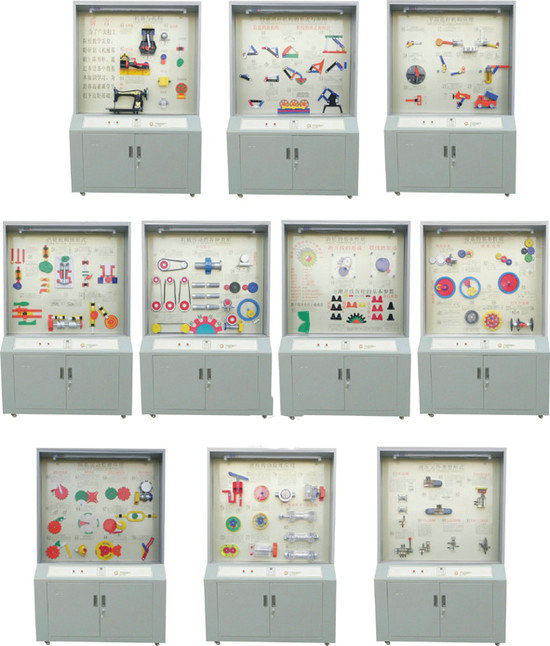一)產(chǎn)品概述:機(jī)械原理陳列柜,機(jī)械綜合陳列柜、機(jī)械基礎(chǔ)陳列柜是根據(jù)大、中專院校、技校、職業(yè)學(xué)校的機(jī)械原理教學(xué)大綱而設(shè)計的一套電化教學(xué)設(shè)備!稒C(jī)械原理》課程是工科院校機(jī)械類、近機(jī)械類專業(yè)的一門重要技術(shù)基礎(chǔ)課程。陳列柜共分十個柜和一個在DVD控制臺,進(jìn)行聲控同步解說演示。由單片機(jī)控制順序或任選運行每個柜模型動作。(機(jī)械綜合陳列柜、機(jī)械基礎(chǔ)陳列柜、機(jī)械零件示教陳列柜、機(jī)械原理與機(jī)械設(shè)計陳列柜)